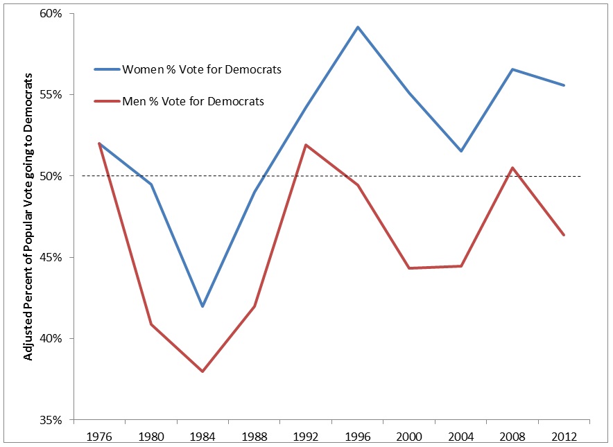 Chart 1: Adjusted Percent of Popular Vote going to Democrats, by Gender